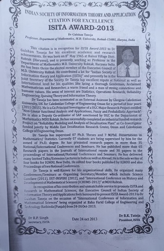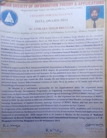 ISITA Award of Excellence to Dr. P.L. Maggu