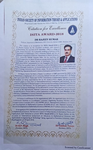 ISITA Award of Excellence to Dr. D.S. Hoda